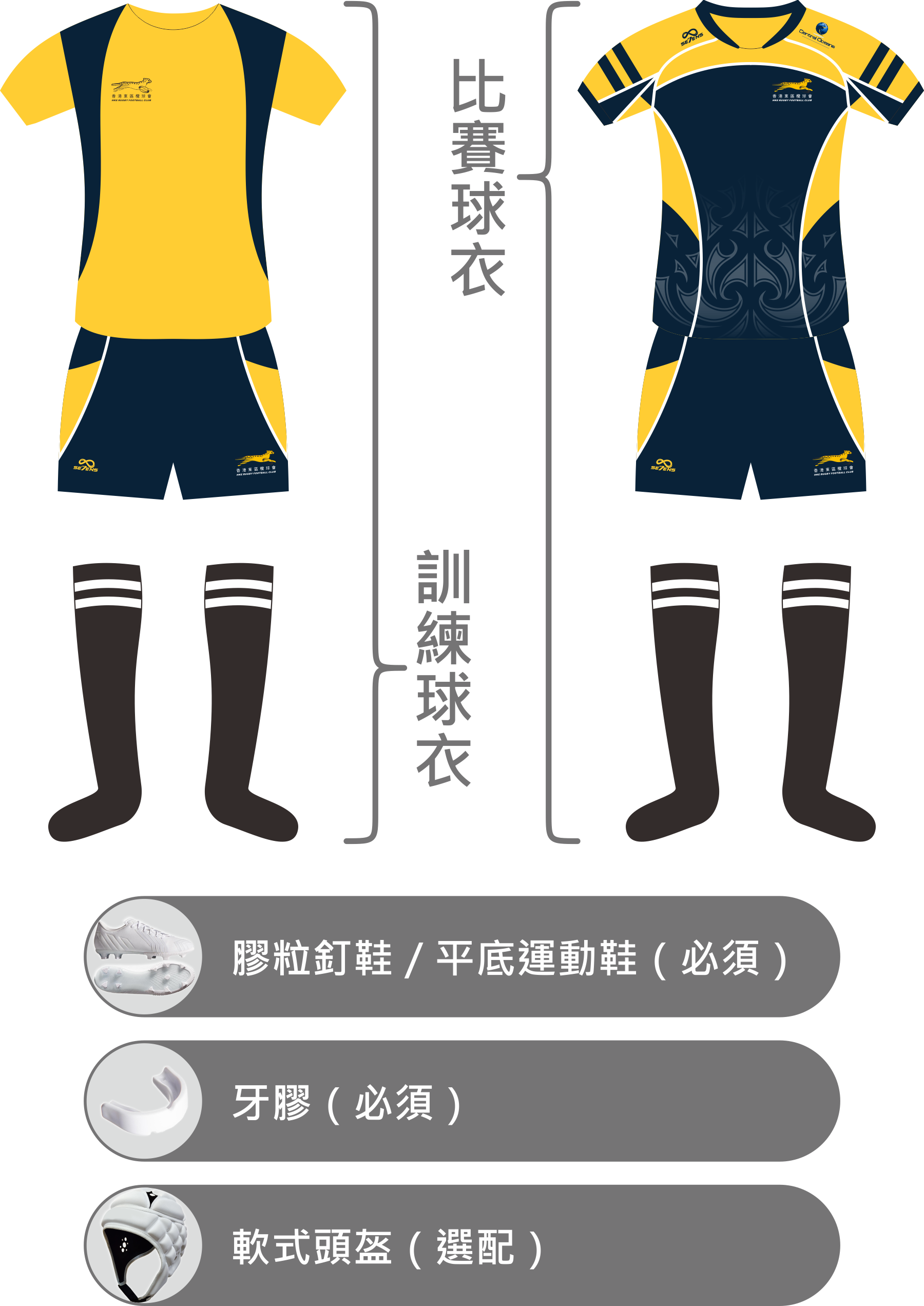- 穿著整套球會指定服飾: